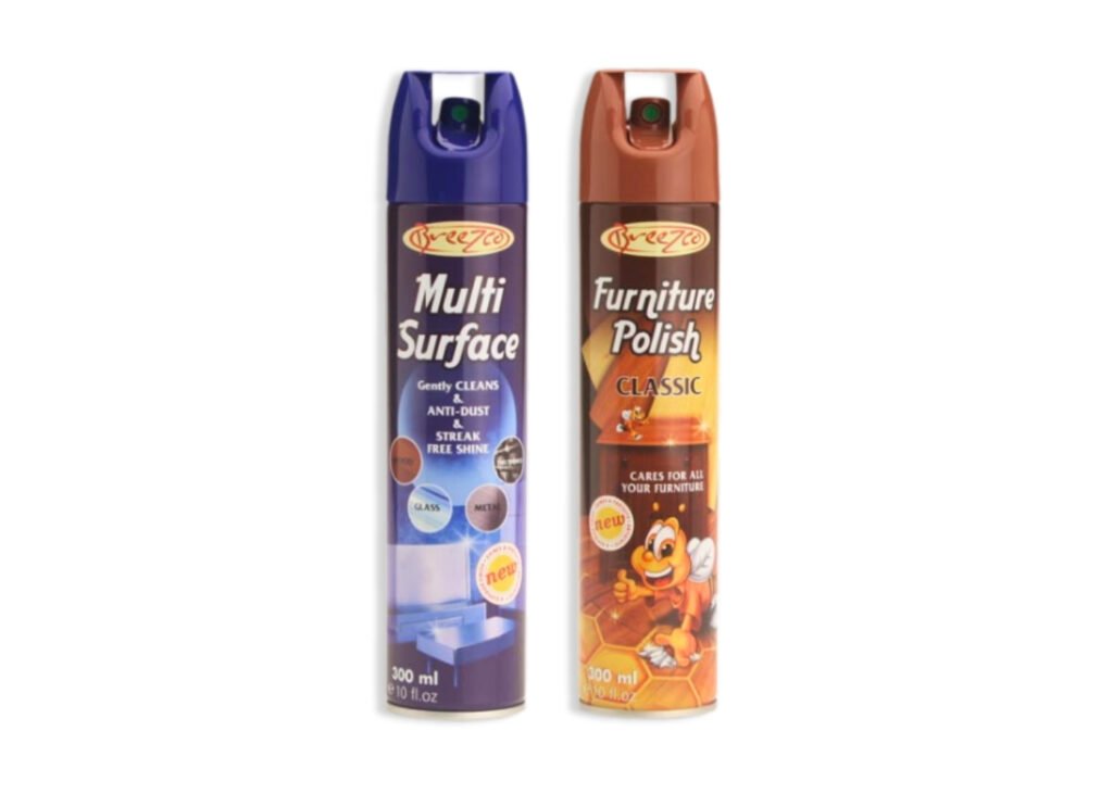 Breezco Furniture Polish eliminates dust and protects all furniture surfaces.